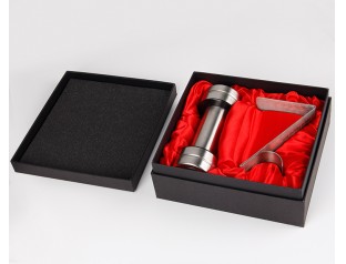 圍邊天地蓋禮盒定制是以雙銅紙作為原料,盒子表面的logo采用uv印刷工藝,覆啞膜;作為五金的包裝盒在盒子內(nèi)鋪了一層色丁布,增加禮盒的高級(jí)感,即使裝的是幾塊鐵也不顯得low;盒子表面壓紋處理有質(zhì)感,內(nèi)部做復(fù)黑色亞膜處理,底部用紅色的內(nèi)紙裱起來,使盒子更加的精致。